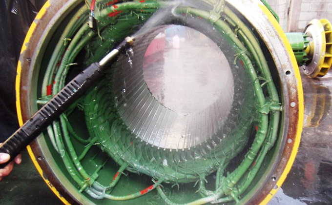 No segundo processo será realizado o tratamento termoquímico que se procedera com a lavagem com água sob pressão juntamente com agentes desengraxantes e solvente especial (HL 26 E recomendado para uso em equipamentos elétricos e eletromecânicos). Posteriormente é realizado o tratamento térmico em estufa com temperatura controlada (120°C por 12 horas).
