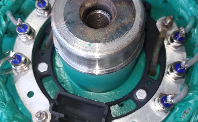Enfim, na última etapa é aplicado o fundo protetivo marítimo (Marinização) no alternador, a qual consiste em um revestimento selante protetivo verde, para melhor conservação e proteção do equipamento em ambientes agressivos.
